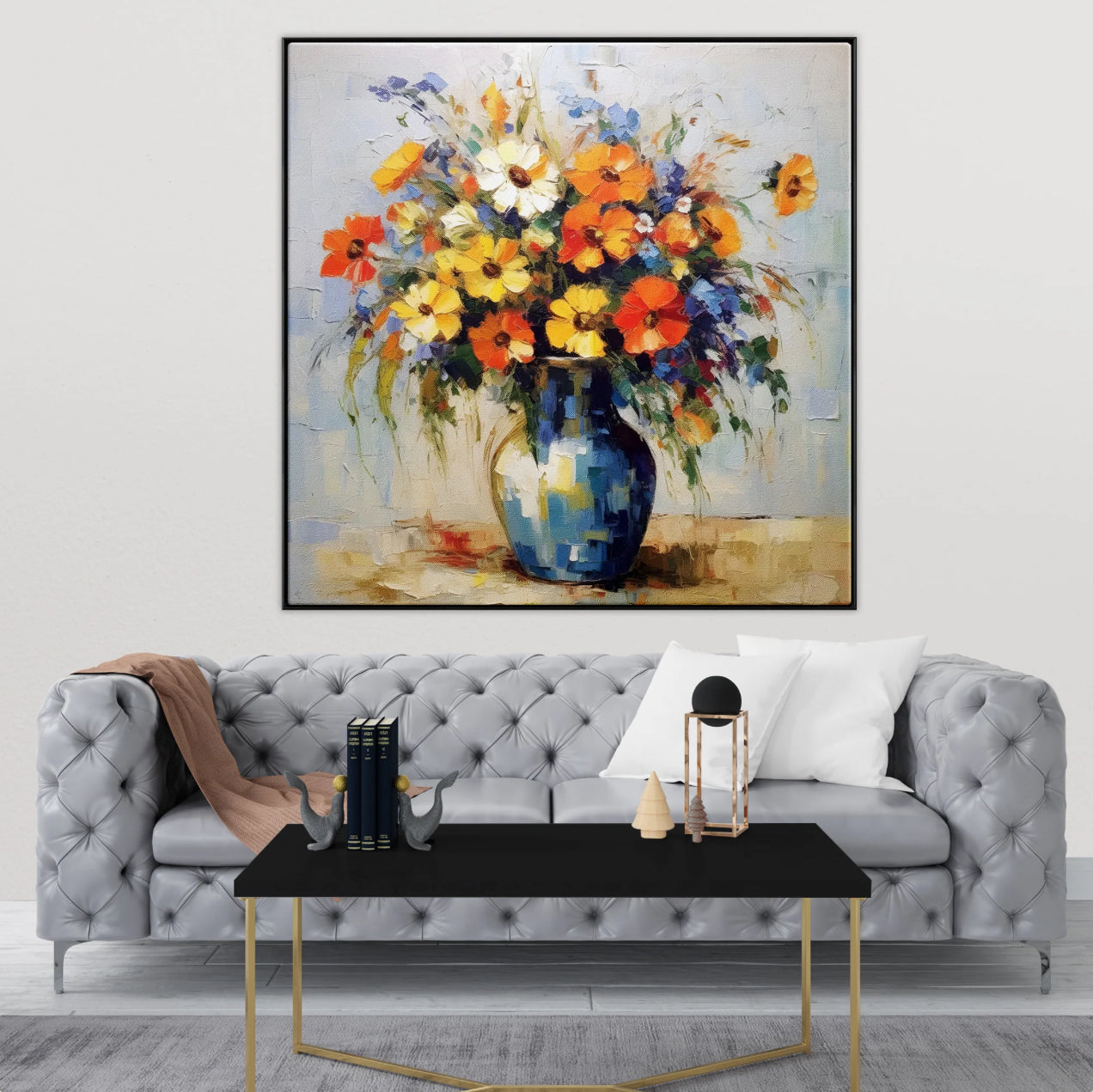 A joyful burst of springtime, this bouquet is a visual symphony of fresh colors. The white and orange blossoms dance with vibrant life, bringing the joys of spring to any home interior.