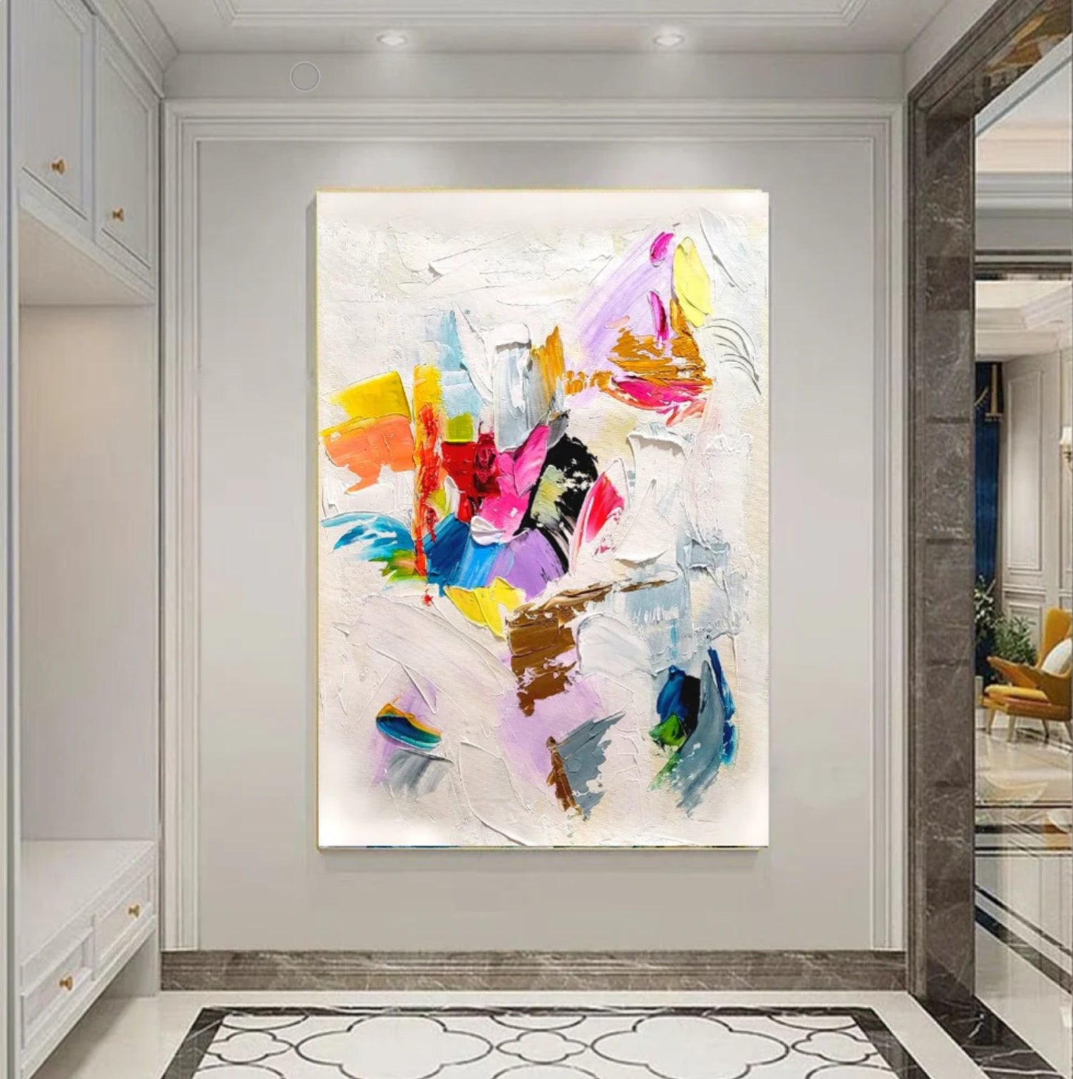 Enhance your living space with this vibrant modern abstract impasto oil painting on canvas.