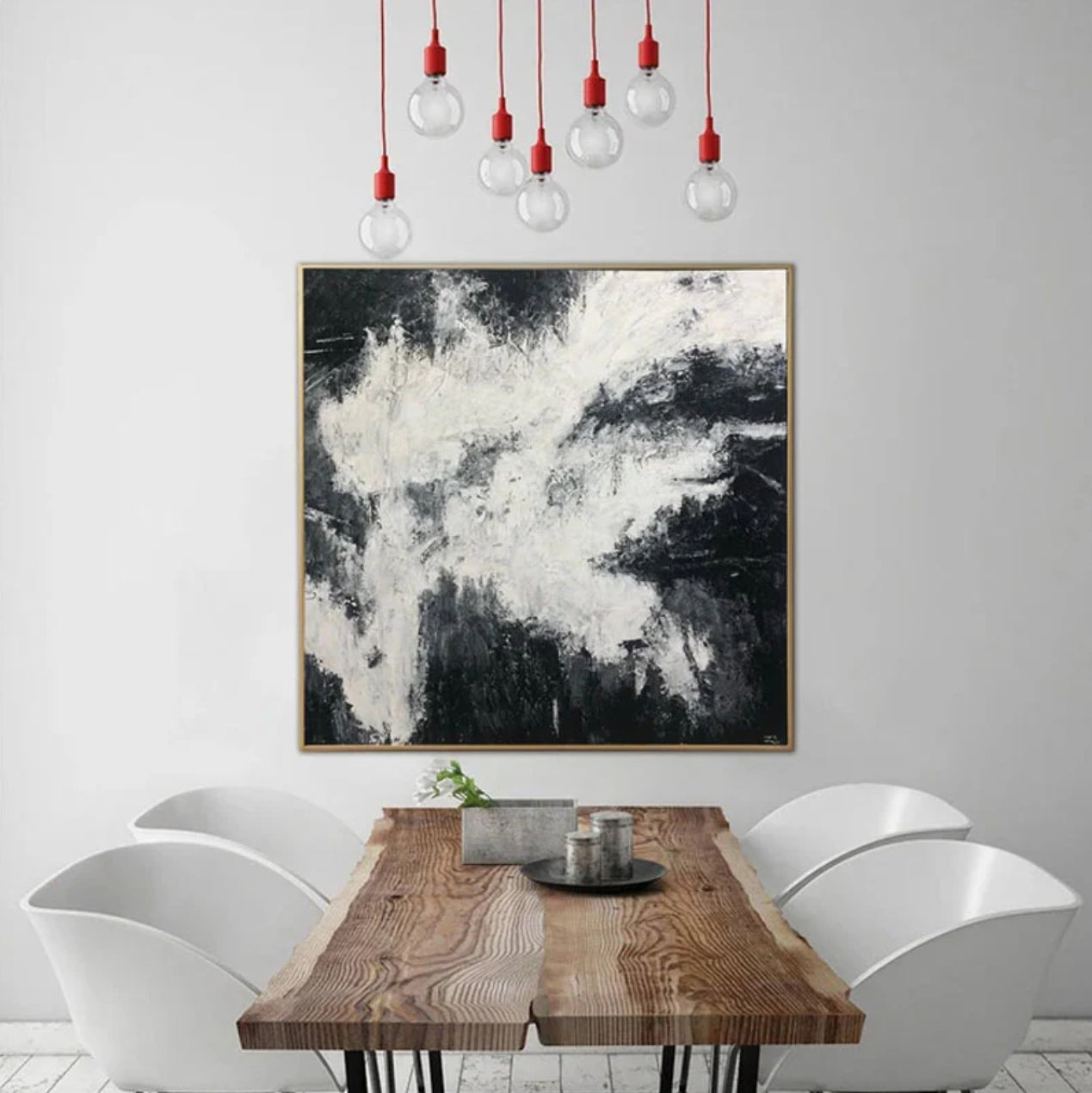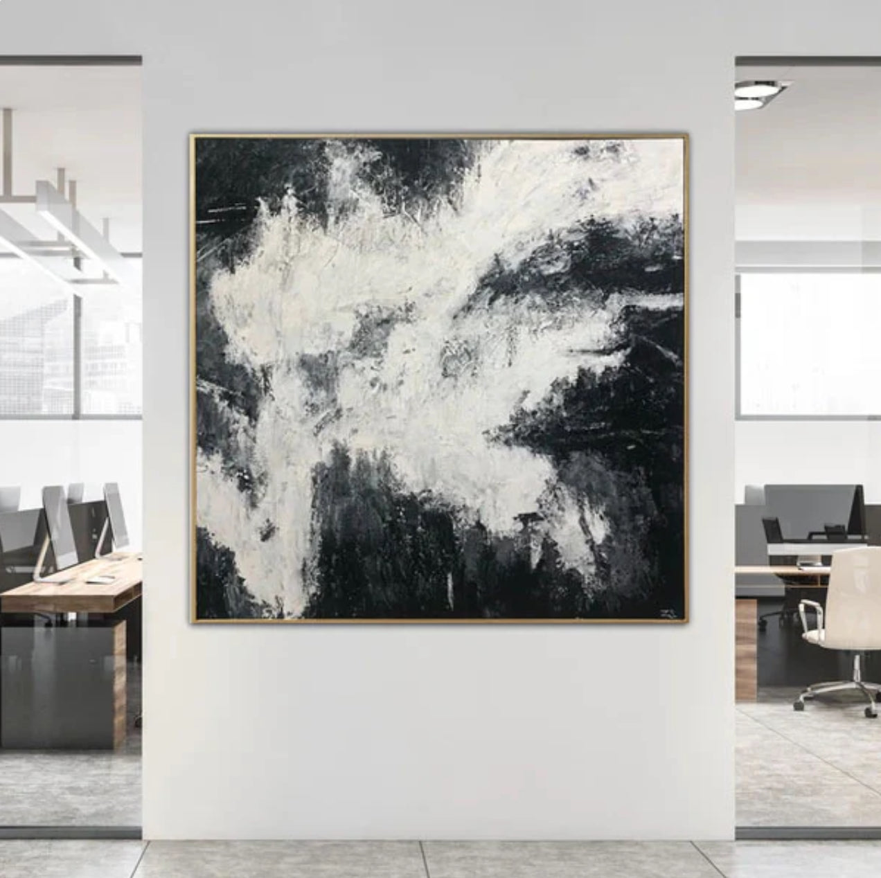 This magnificent artwork left us in a daze with its unique and powerful composition! With only black & white colors, this painting still manages to captivate the beholder, because of the movements and contrast within the paint!