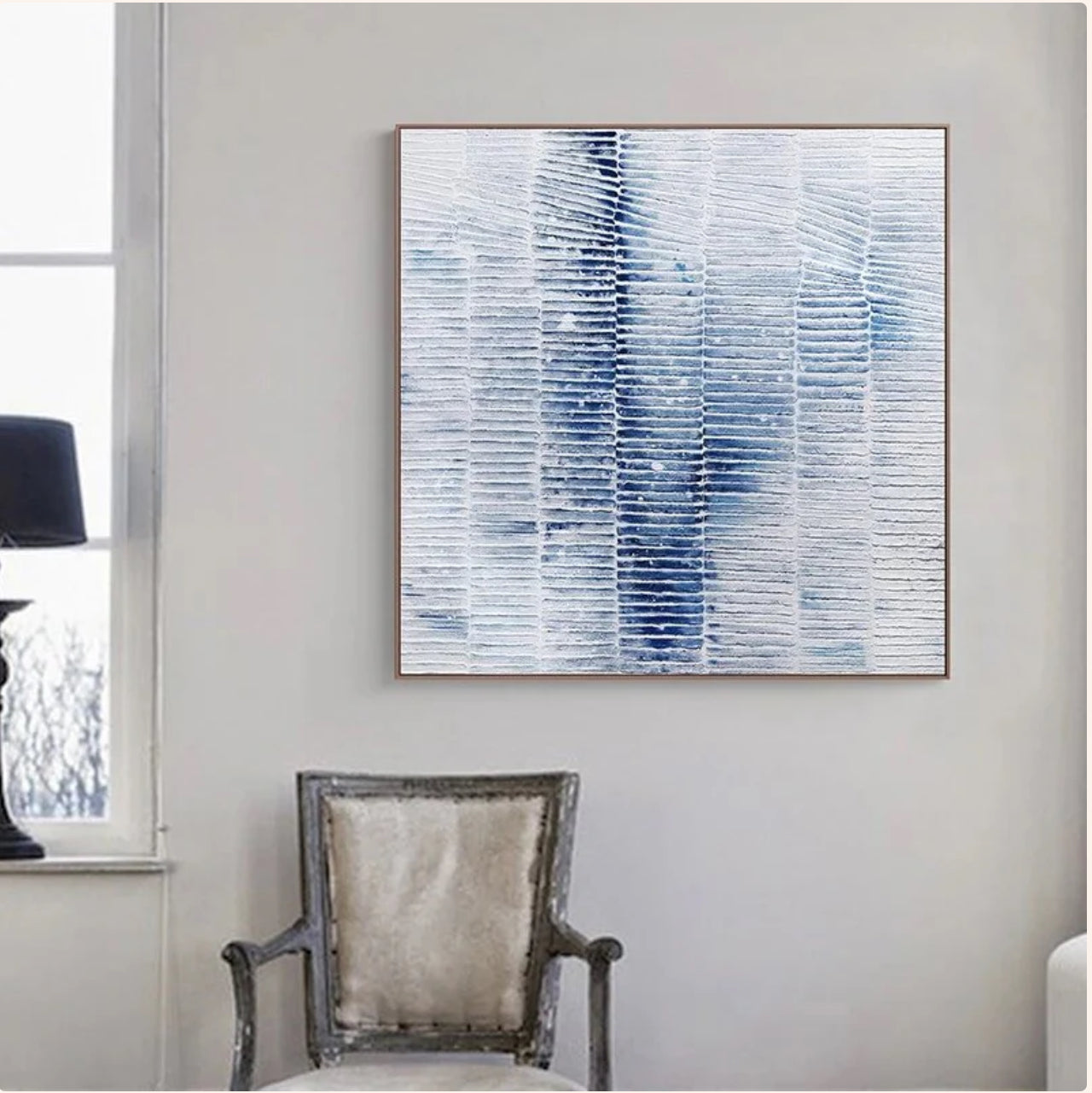 What a beautiful, mesmerizing art piece this is! With a unique technique, the artist created a kind of layered 3D effect! This makes the painting really pop off the wall!