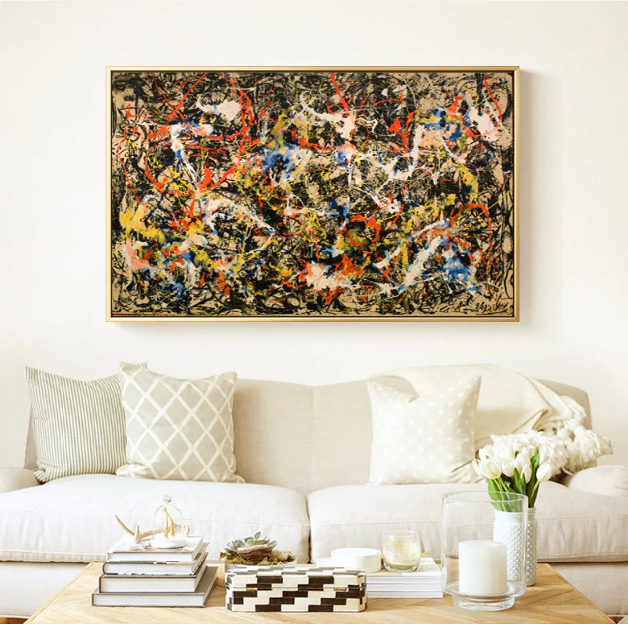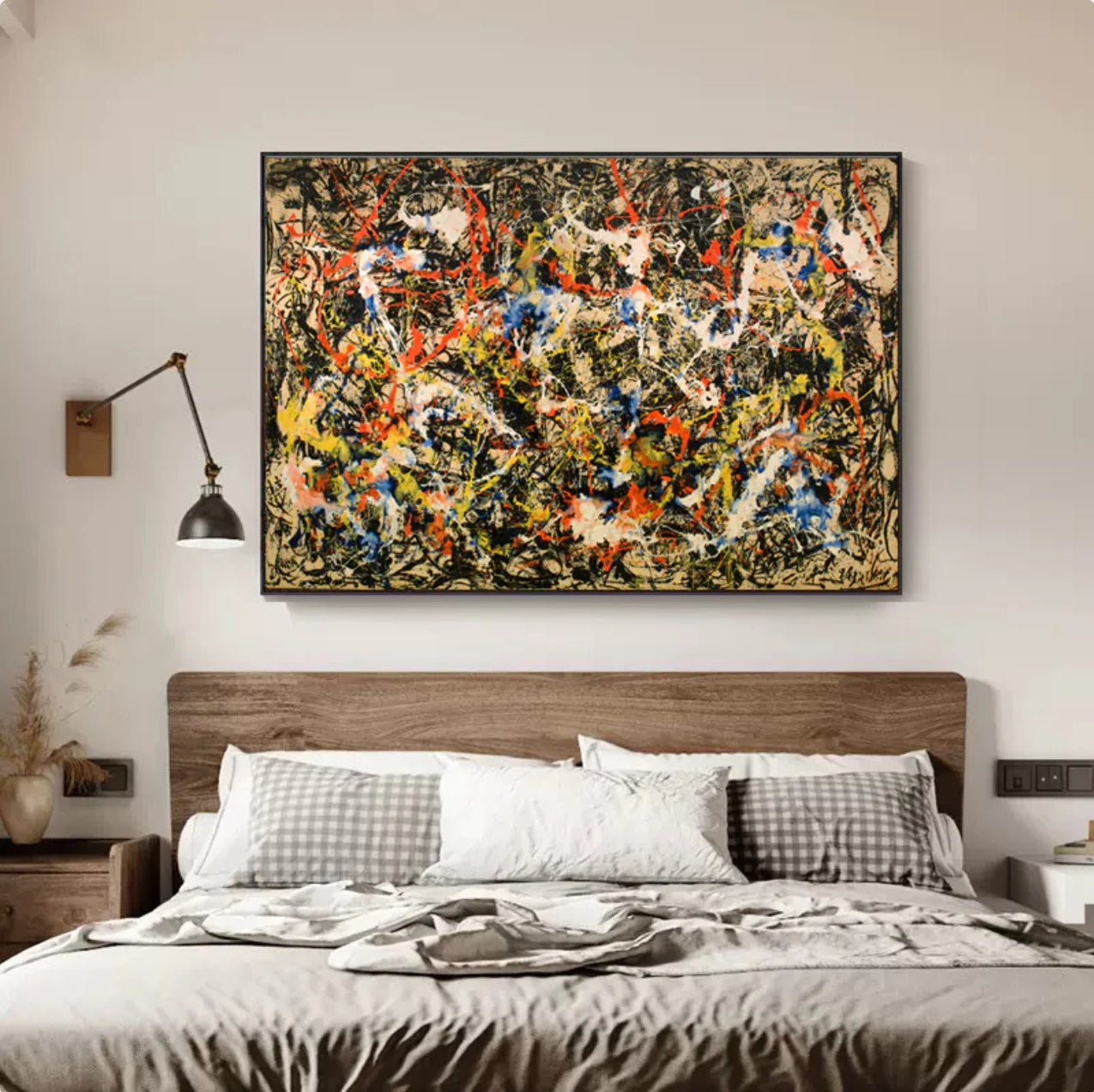 In 'Division', colors swirl and mix in a lively chaos, creating an exciting and eye-catching composition. This stunning artwork invites you to explore its intriguing divisions, making you discover something new anytime you look at it.