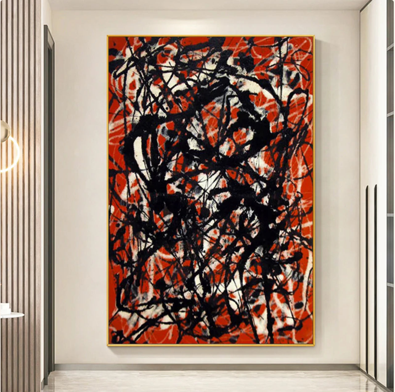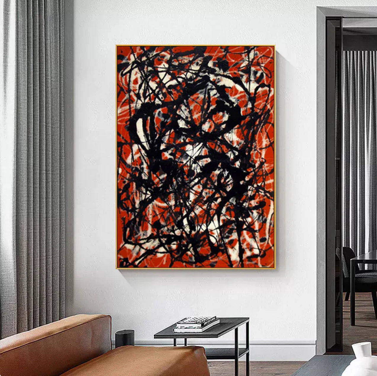 With a unique color scheme, inspired by the art of China's many dynasties, this modern art piece dazzles you with its dynamic composition. Get lost in its many intricate brushstrokes and see the beauty through the chaos.