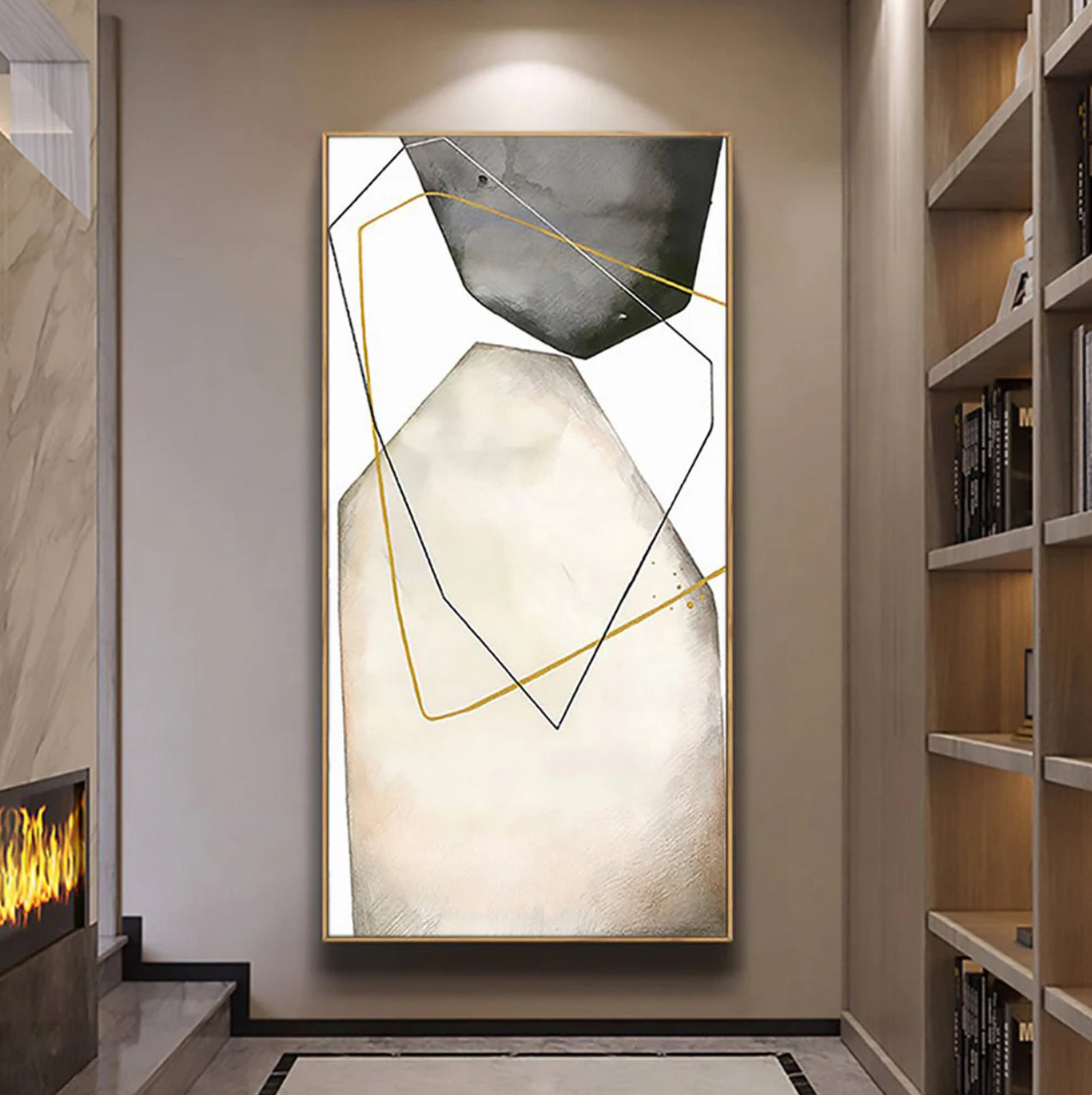 Equilibrium, a stunning painting in which opposing forces are in perfect balance. Everyone has their differences, but we just need to unite those and not fight them! The pearl white and coal-black gems stand harmoniously within the abstract golden and silver circles to create a powerful yet friendly and welcoming feel.