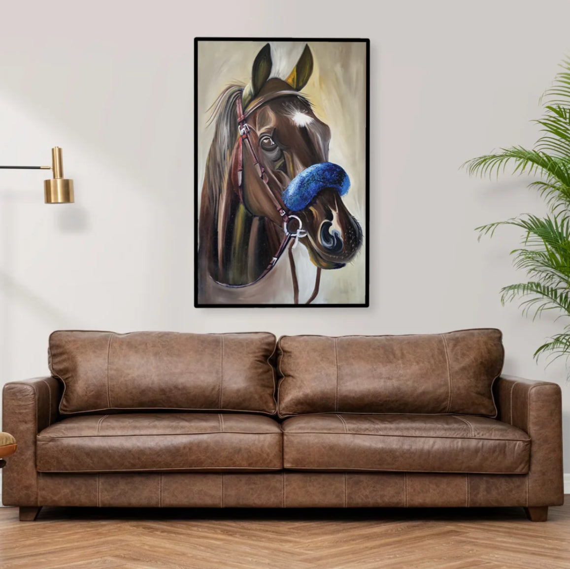 This beautiful horse painting is sure to stand out. Expertly crafted with a careful eye and vibrant colors, this unique handmade piece of art is sure to last. Bring life to your walls with this truly captivating Equine painting.