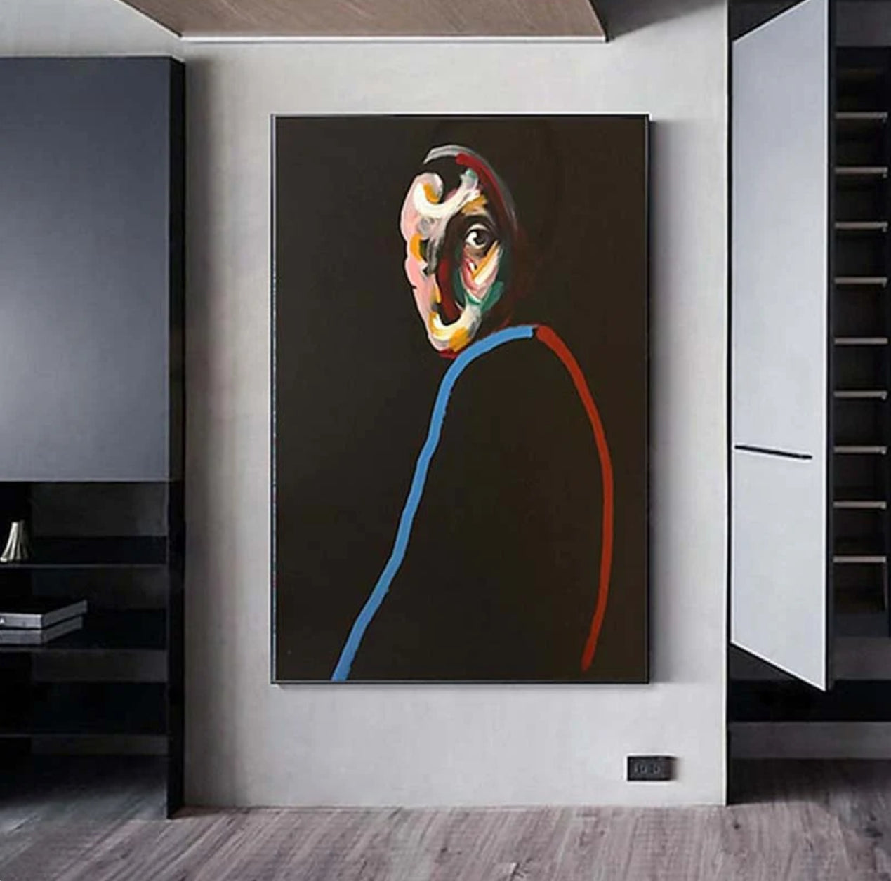 Eyes of the Lost captures a melancholic gaze with haunting beauty. The vibrant colors contrast against the dark background, evoking a sense of deep emotion and introspection, perfect for adding a touch of mystery to any space.