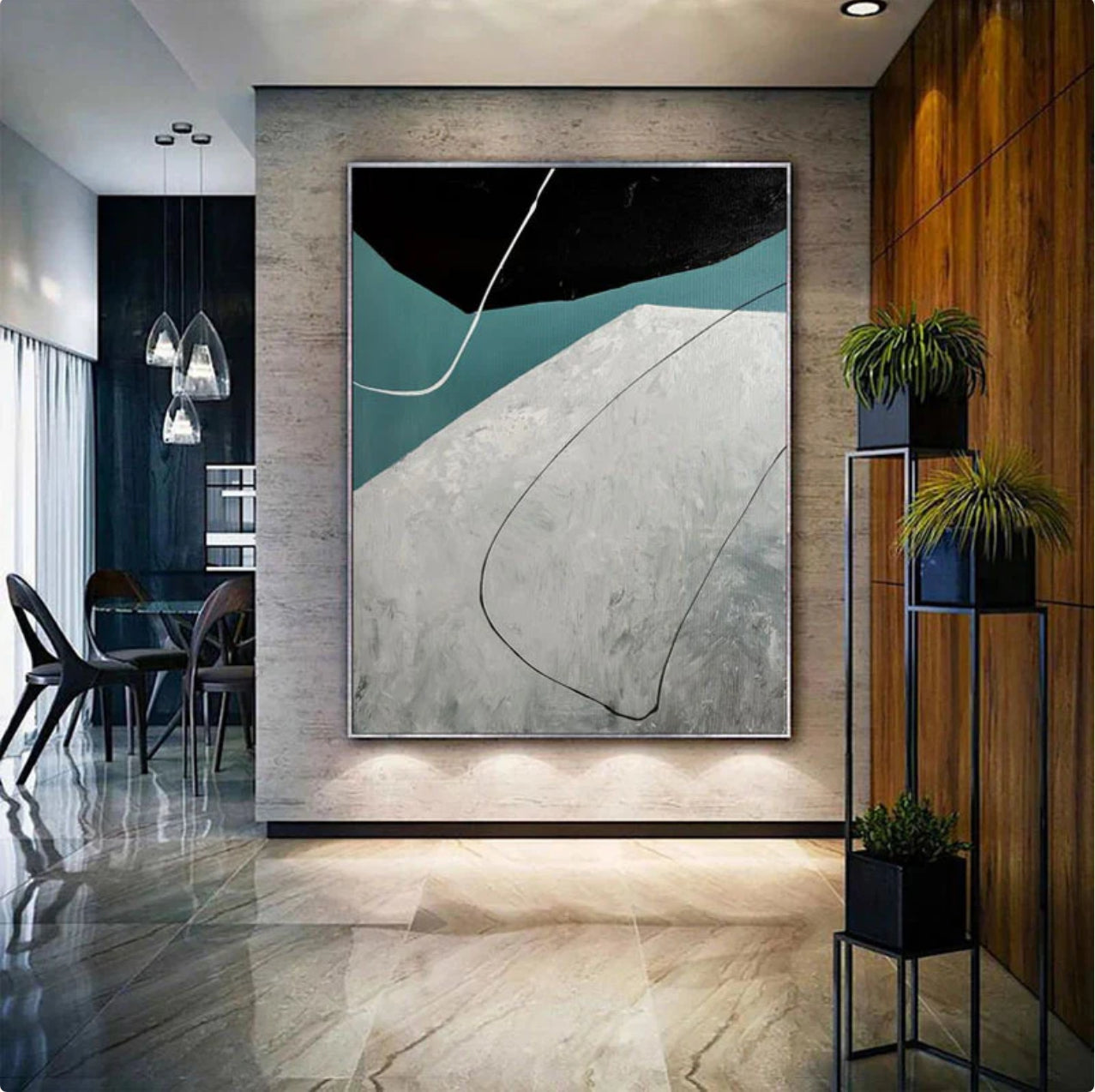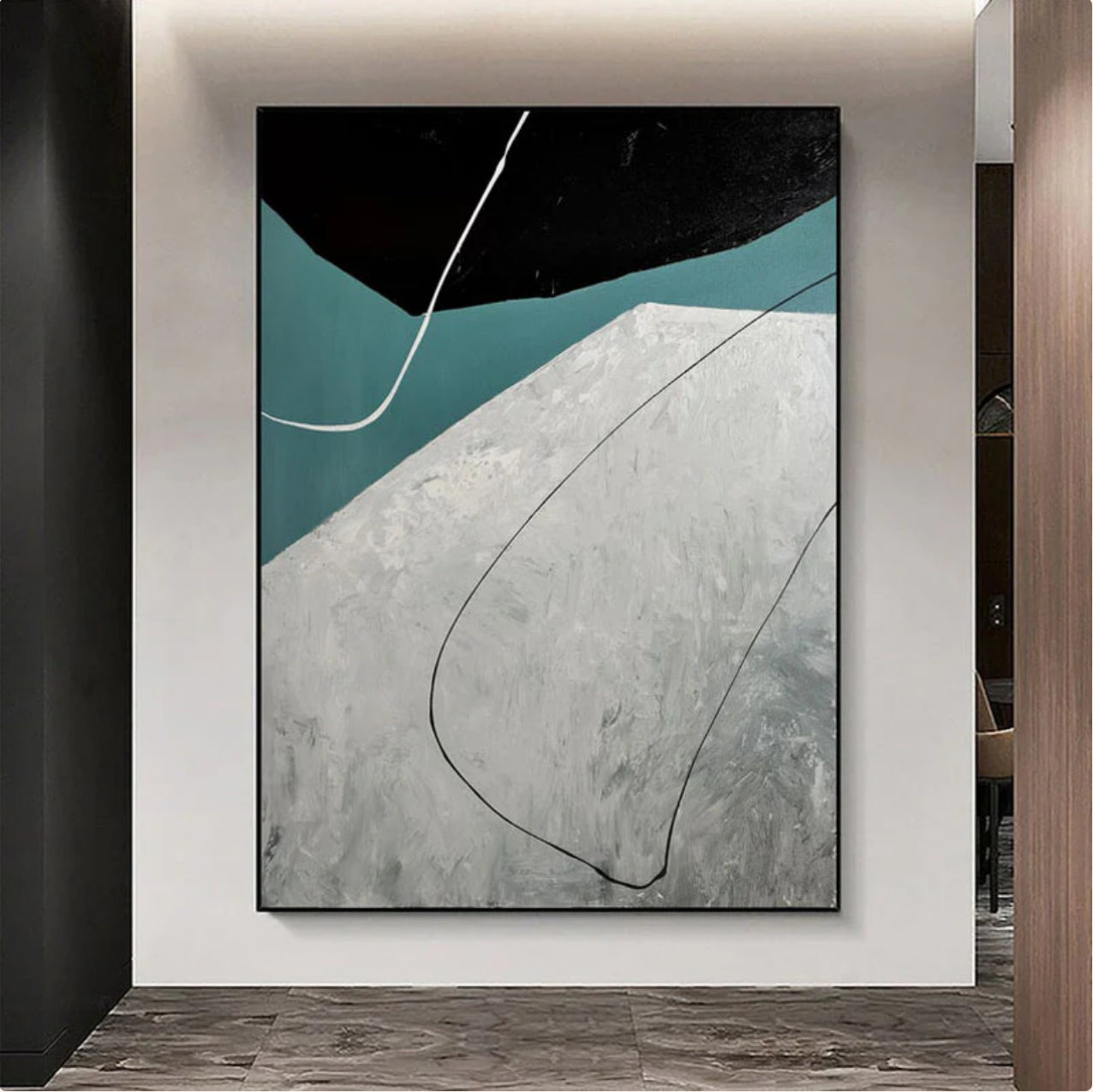 Flight brings a sense of movement and freedom to your home. The abstract design and harmonious colors make this painting a striking addition to any home interior.