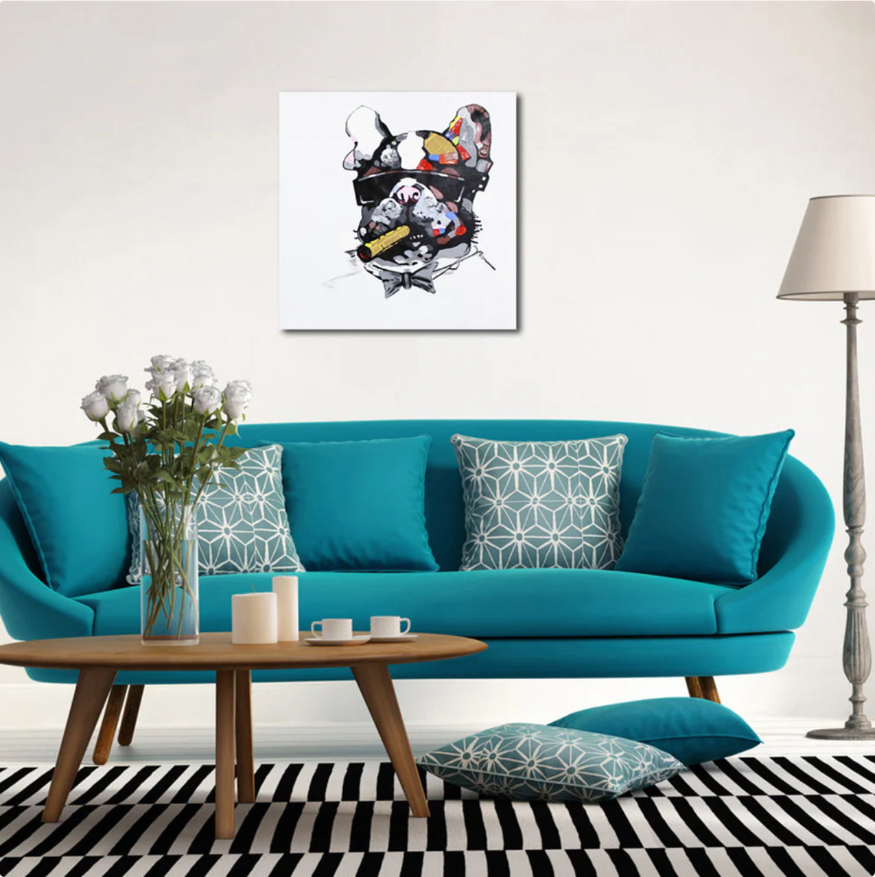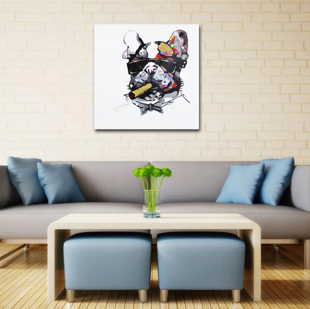 Meet 'Frankie', one of the coolest pugs we have ever seen! He is just minding his own business and living his best life! His colorful face creates a beautiful contrast with the black & white background, making this amazing ape come even more alive!