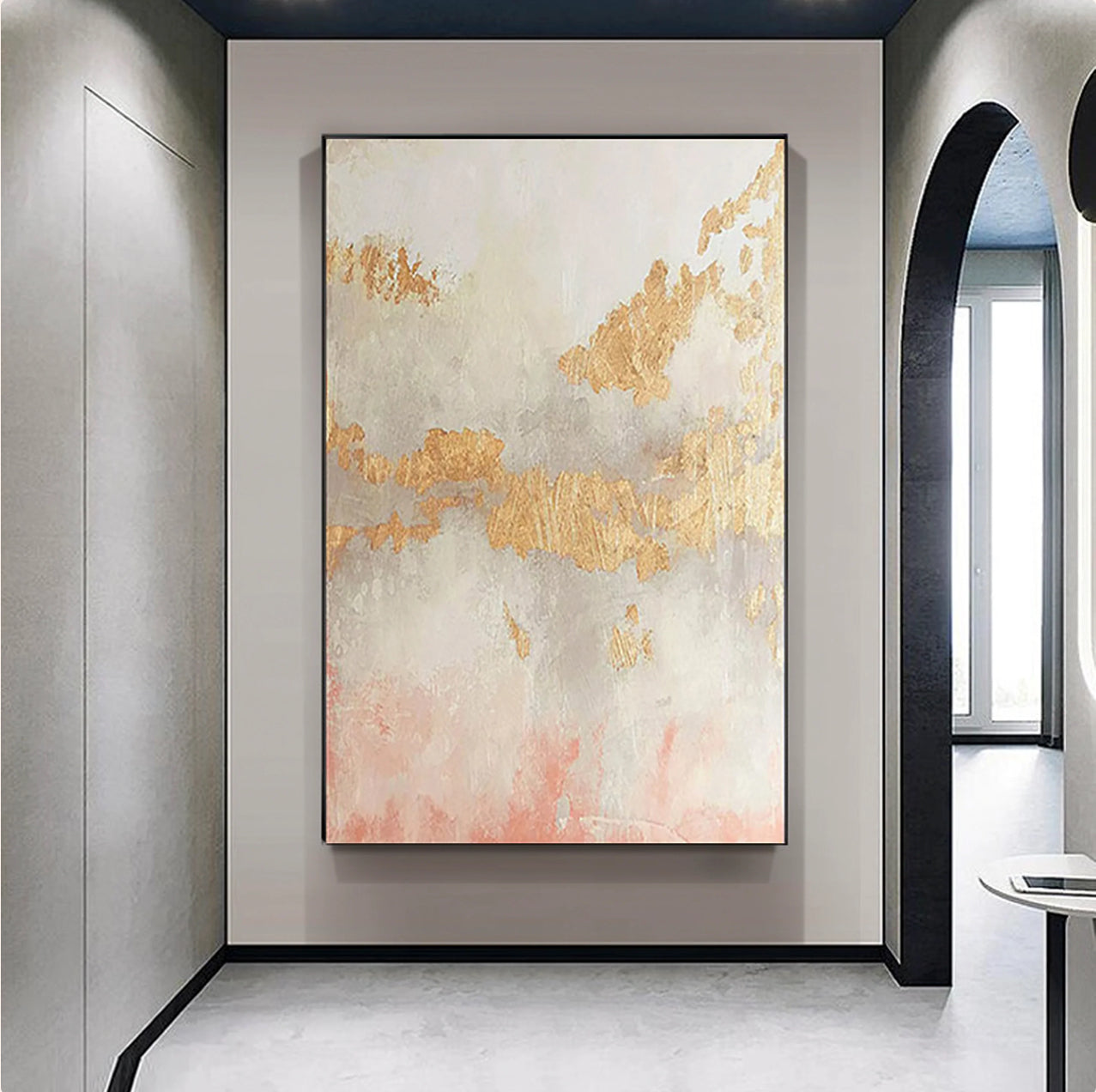 Nebula, also named cosmis dust, is the birthplace of stars in our universe. A wondrous, natural sight that is displayed beautifully in this abstract art piece. The golden details make this piece a subtle eye-catcher for any type of home interior!