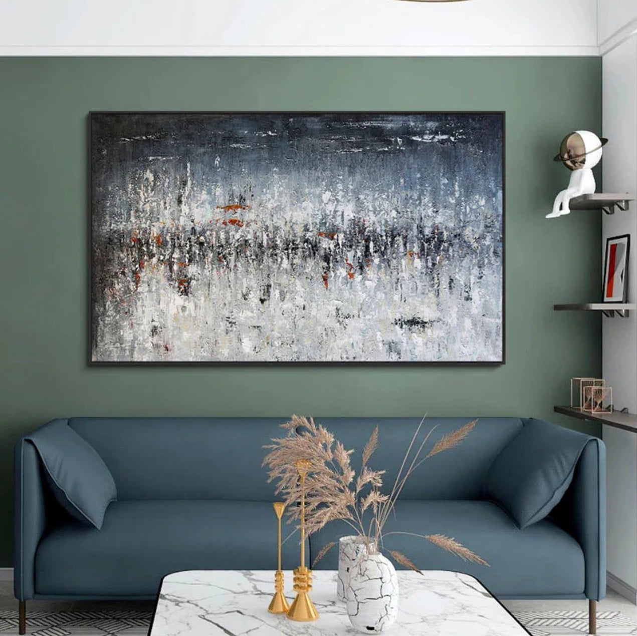 Hail is crashing down from above in a spectacular way. This dynamic artwork ‘Hailstorm’ shows the natural beauty of a mighty storm. The subtle color scheme makes this painting suited for any home interior!