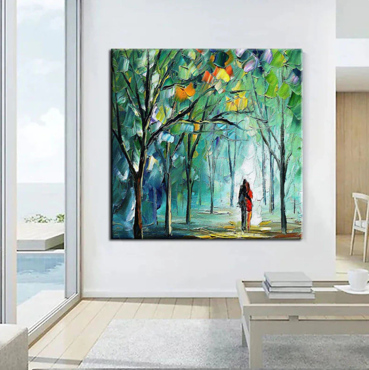 This idyllic artwork takes you deep into this beautiful forest with an inviting composition and a magnificent color scheme! Take a step into the unknown and discover all of the beauty that lies ahead in these colorful woods!