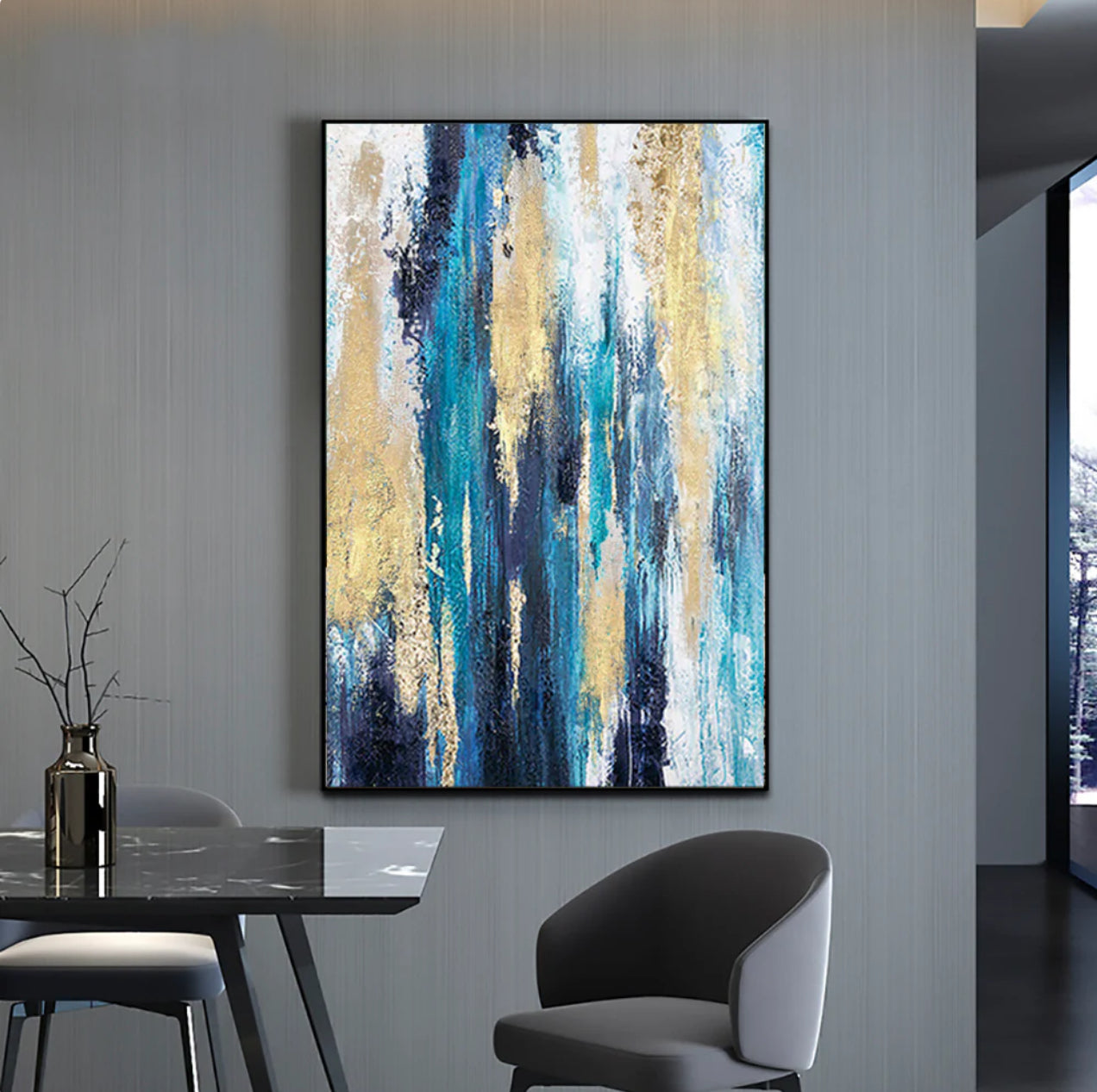 This abstract painting is called Jungle, and with the use of just a couple of colors, you bring the luxurious aspects of the jungle right into your room. This piece of art is a total eye-catcher.