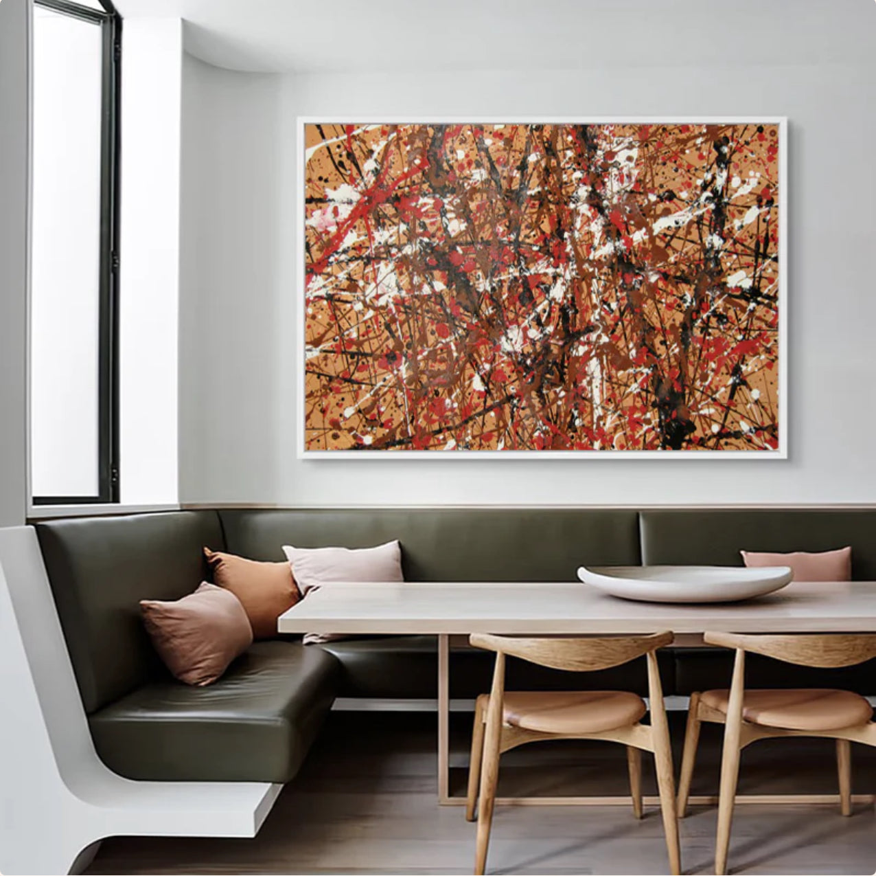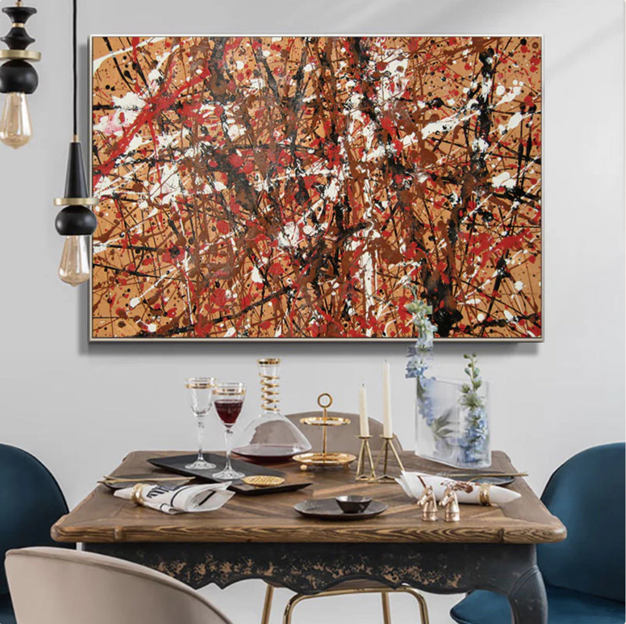 Unravel "Life's Puzzle," a captivating artwork that embodies the many questions of life. Vertical brushstrokes of red, black and brown dominate the canvas. Let this thought-provoking piece invite you into into the depths of life's intricate puzzle.