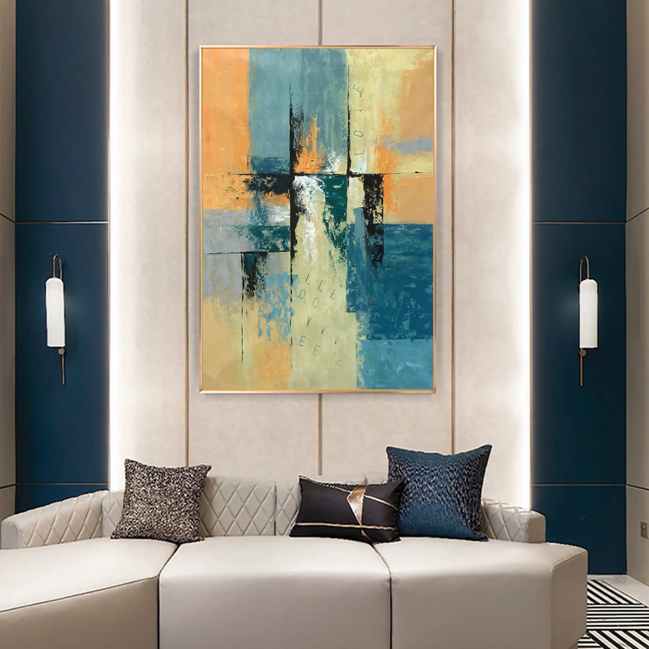 This unique modern art piece 'LoveLoveLove' is an homage to all abstract art. Through an eccentric composition and an exceptional color scheme with beautiful contrasts, this artwork will astound you every time you look at it!
