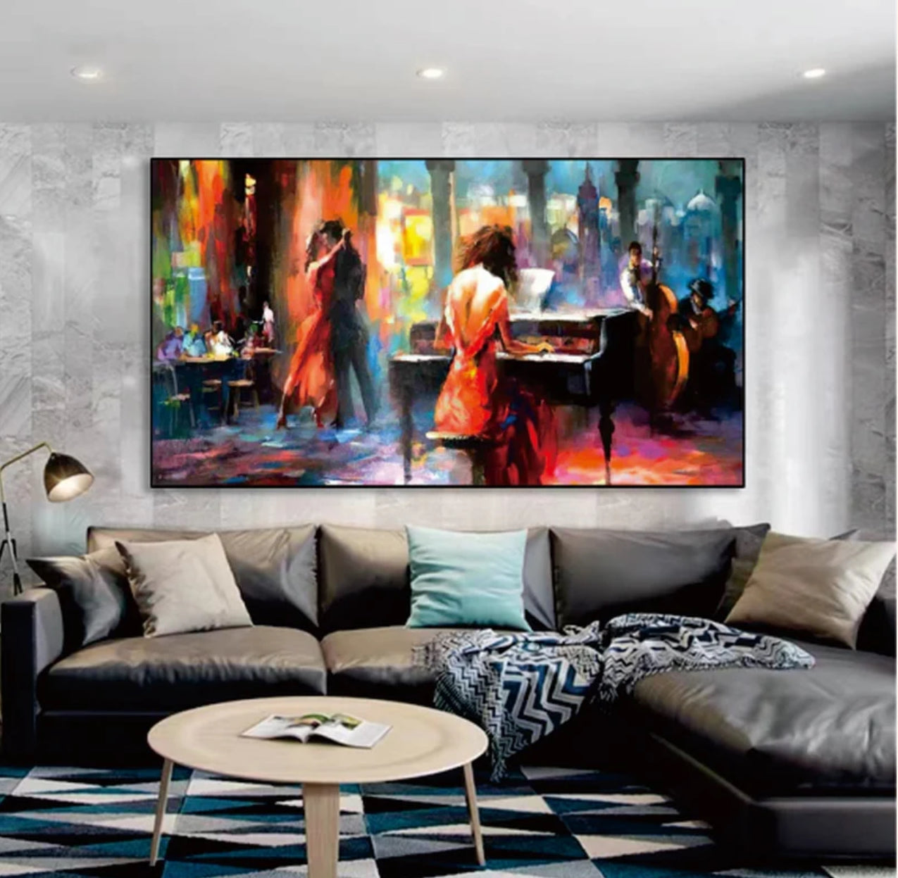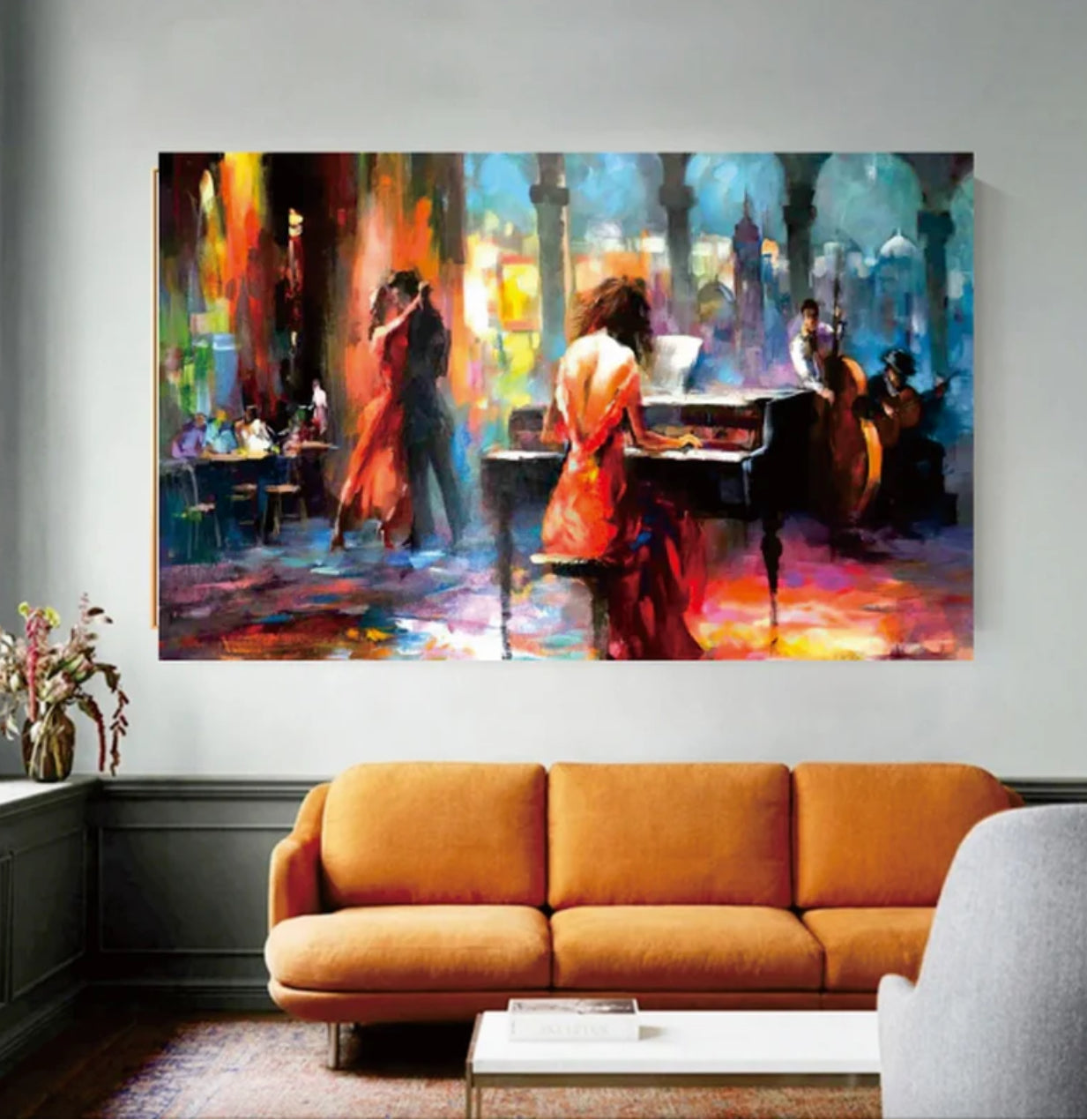 Step into the roaring 1920s with "Metropolitan Night." The impressionistic piece brings a vibrant music scene to life. A pianist, captured from behind, embodies the era's rhythm gracefully. The canvas pulses with the ambiance of a bygone American night, alive with jazz and style.