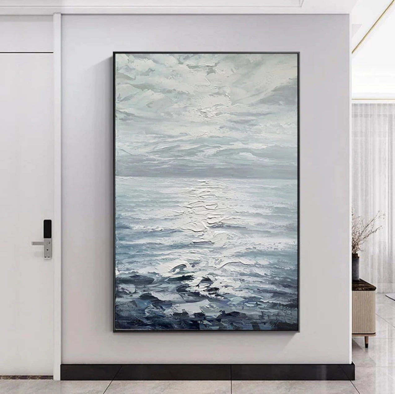 Nihon-Kai is the Japanese word for: 'Sea of Japan. It's characterized by its mountainous surroundings,pearl-white skies, and beautiful, rugged coasts. These characteristics are all captured stunningly in this subtle art piece!
