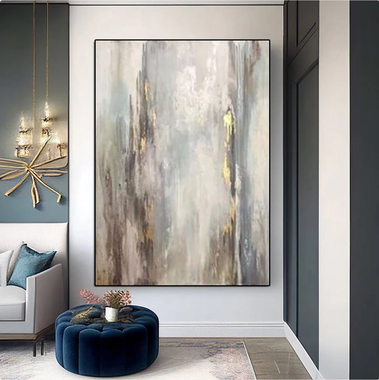 This artwork captures the essence of refined luxury. Its beautiful ,golden accents blend seamlessly with muted tones, adding depth and warmth to your space while keeping things effortlessly chic.