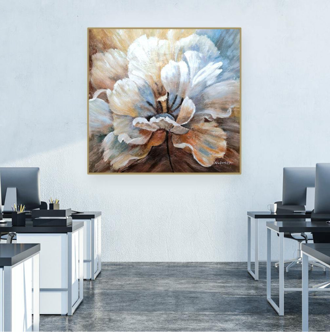 An adept blend of neutral tones and top-notch techniques, Petals of Serendipity with its delicate hatching and impasto strokes of white and amber, spreads a sense of hope, positivity and, the fruition of hard work, making it perfect for your office or living space, where you need to stay inspired the most.