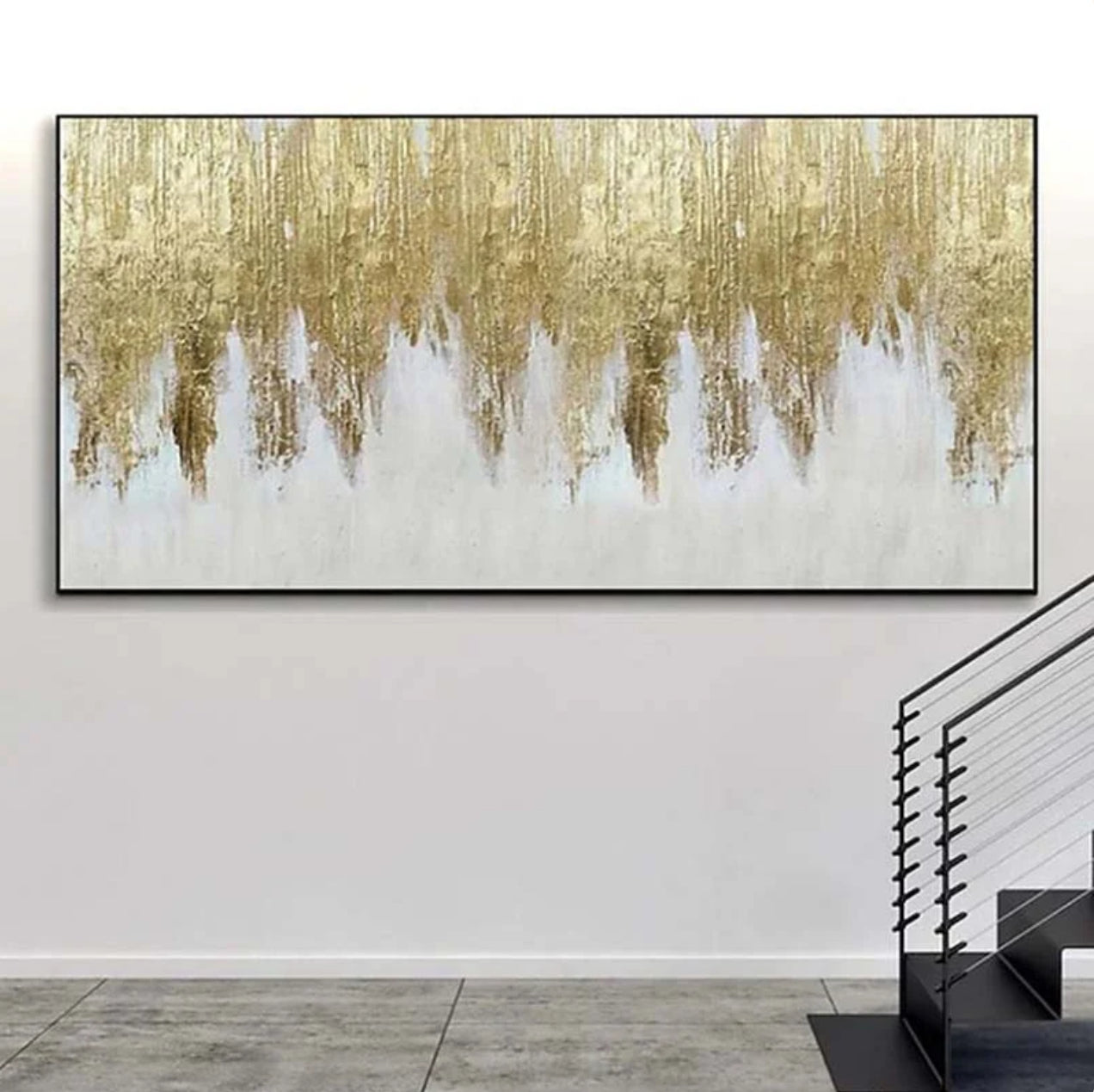 Bring a touch of sophistication to your home with this stunning artwork. The shimmering golden tones and flowing design add an element of elegance and luxury to any room.