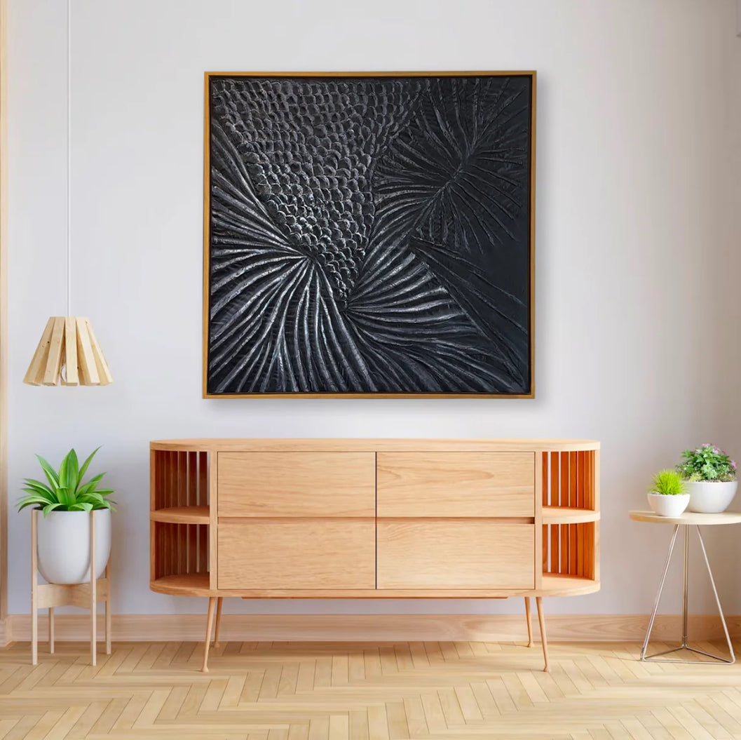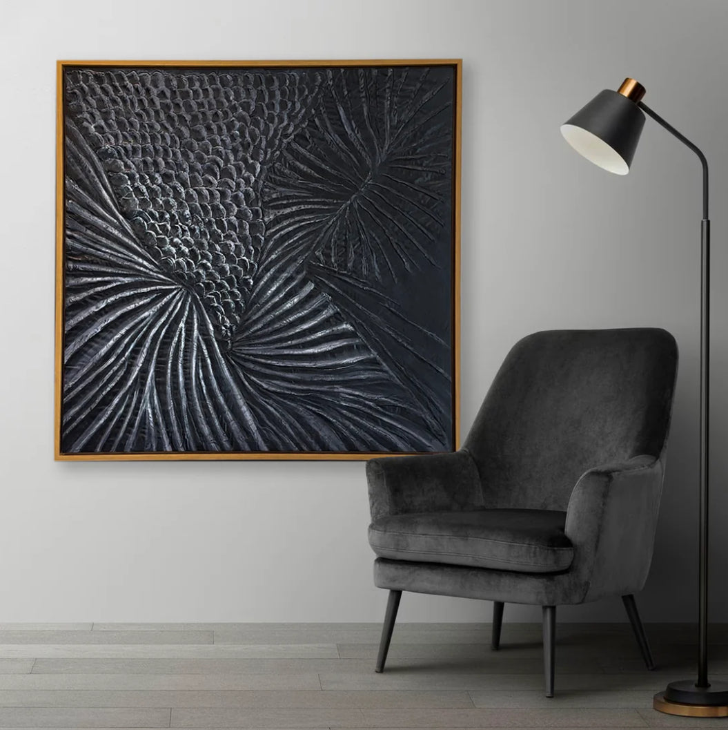 The textured surface of the painting adds dimensionality to any wall, making it a dynamic focal point that can enhance the overall ambiance of a room. Its monochromatic palette allows it to complement a variety of color schemes and brings sophistication to any space. Whether hung alone or as part of a collection, "Raven" is a stunning piece that is sure to add depth and character to any room.