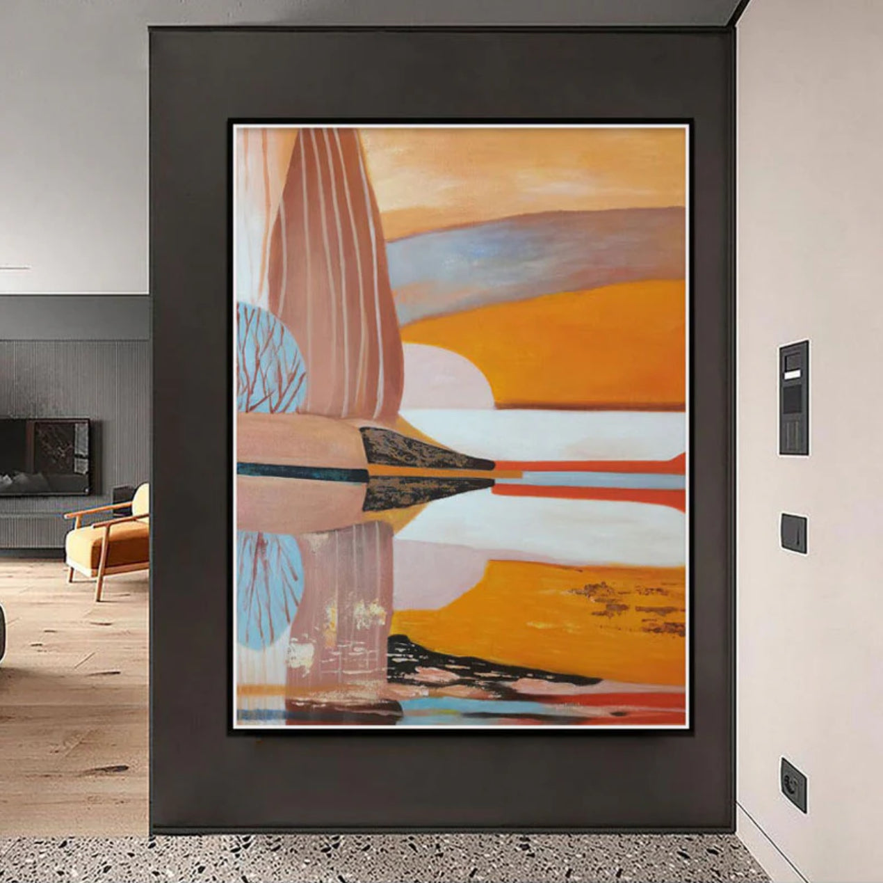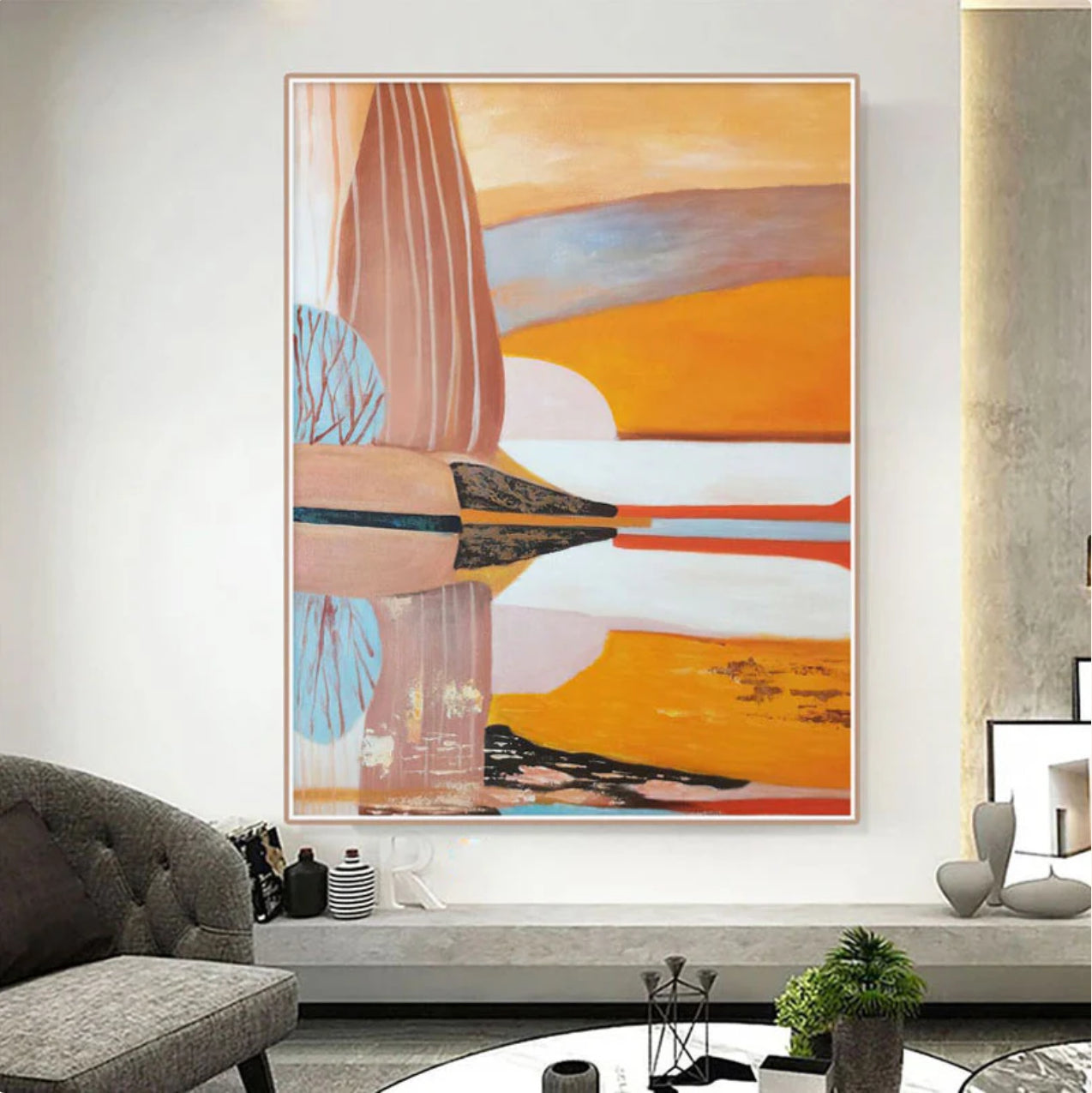 With a unique and distinct style, this abstract art piece 'Sandy' is part of an eccentric new collection. This beautiful piece characterizes itself with an almost symmetric composition and a unique color scheme!