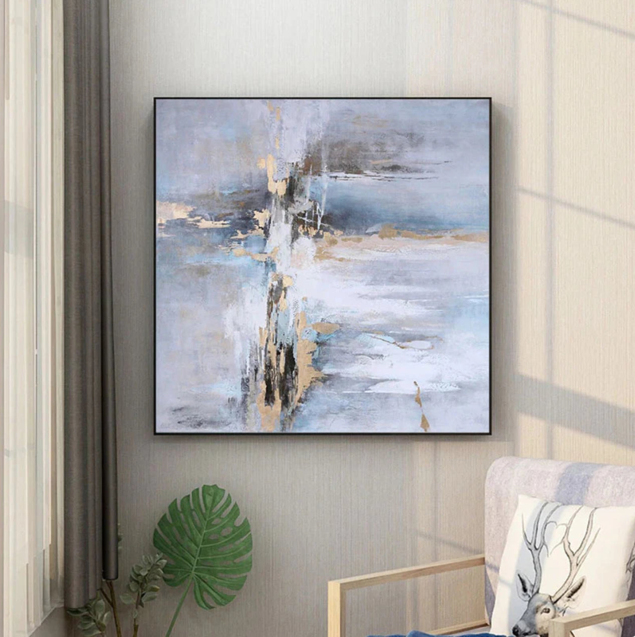 Doesn’t this abstract artwork just tickle your senses? The subtle colors and mysterious composition is an intriguing combination. Making this piece a unique addition to any home interior!
