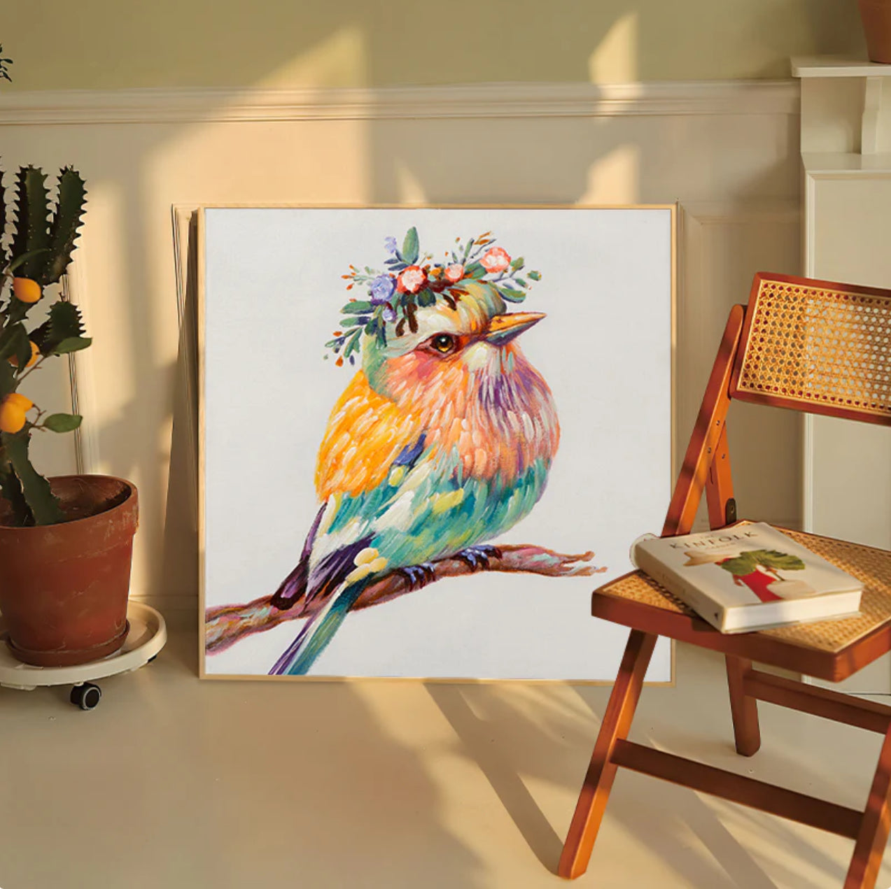 Doesn't she look adorable with her little flower crown? Her beautiful colors create a vibrant sight, that puts a smile on your face every time you walk past it! Create a wonderful, natural atmosphere anywhere with this lovely piece!