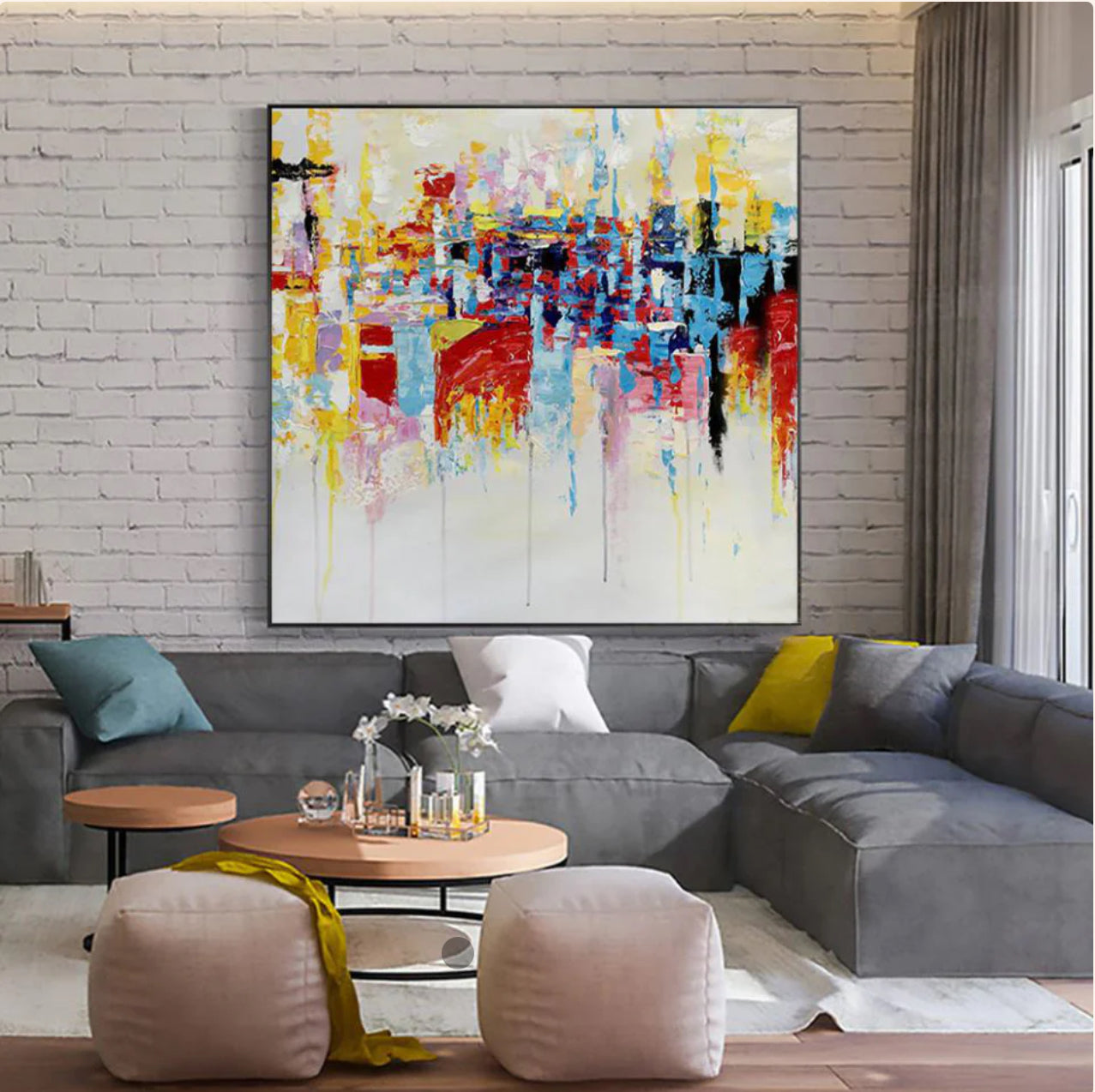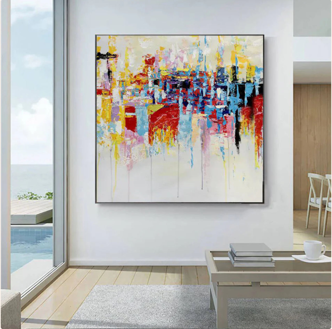 This colorful artwork 'The Good Place' is a vivid collection of colors all blending beautifully in an abstract and dynamic composition. It portrays a place free of any crime, sadness, or trouble: a place where life is good and people prosper.