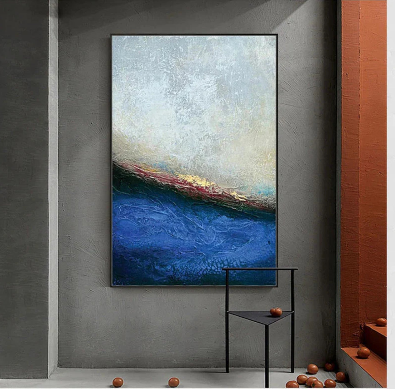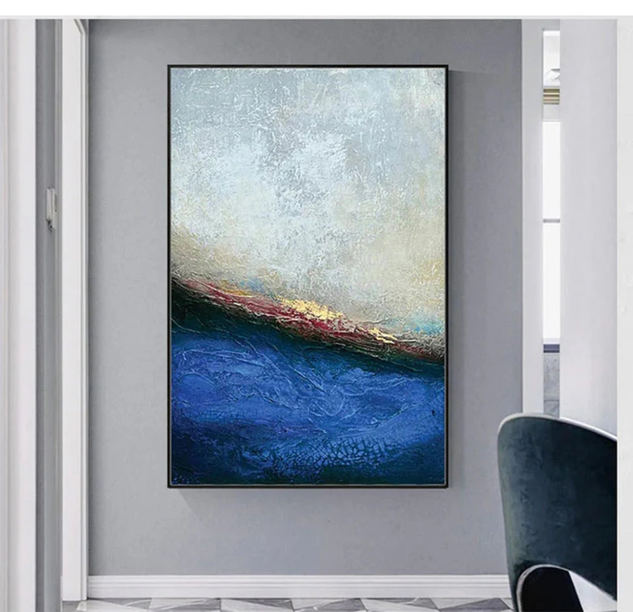 The Kraken captures the mysterious depths of the ocean with its stunning blue hues and textured waves. This abstract masterpiece adds an element of intrigue and elegance to any room, enhancing it with its captivating presence.