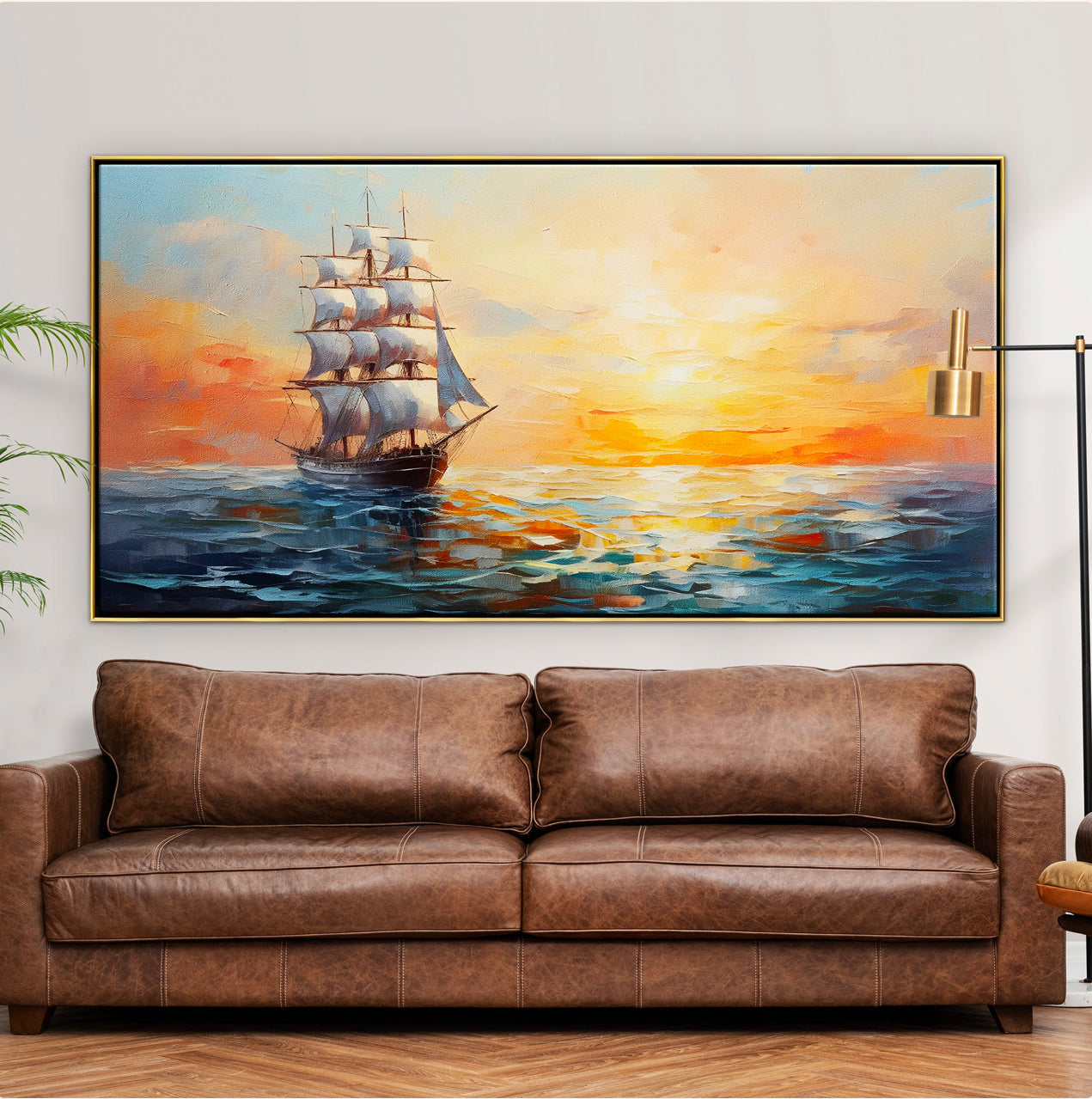 This stunning piece celebrates liberty's call on the open ocean. The towering ship, a symbol of freedom, invites you to embark on an epic journey across vast, open ocean to explore its secrets and riches.