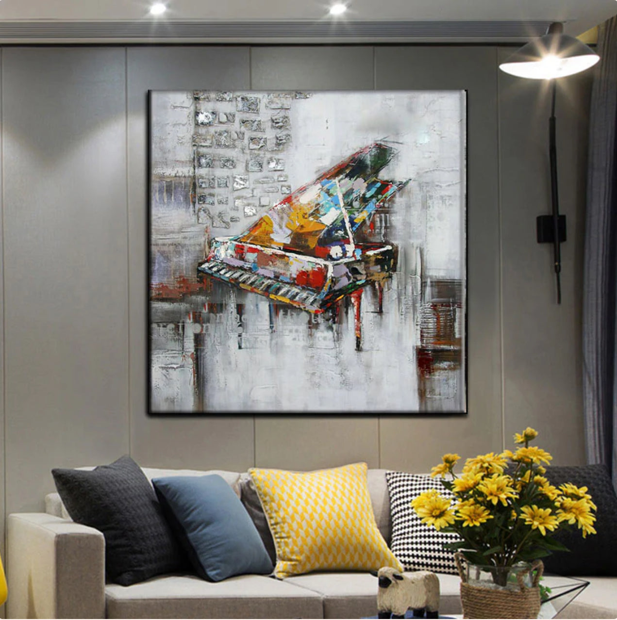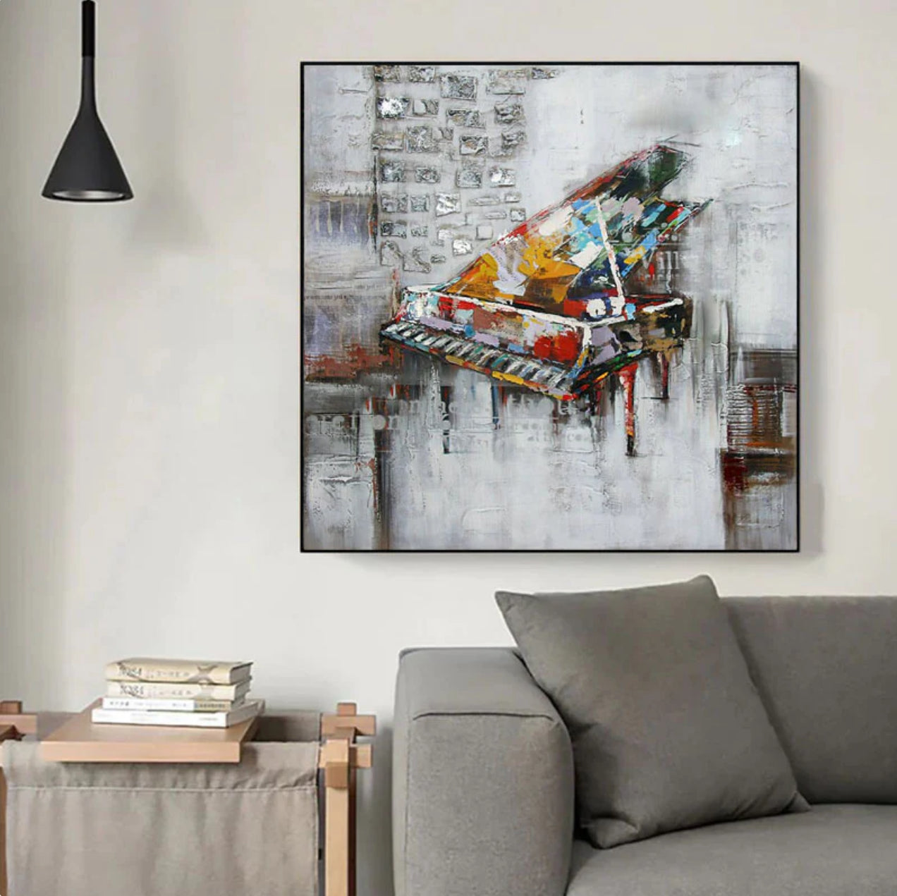 Transform your room with 'The Urban Piano.' This captivating painting features a colorful piano set against an urban backdrop, merging music and city life into a unique and dynamic piece of art