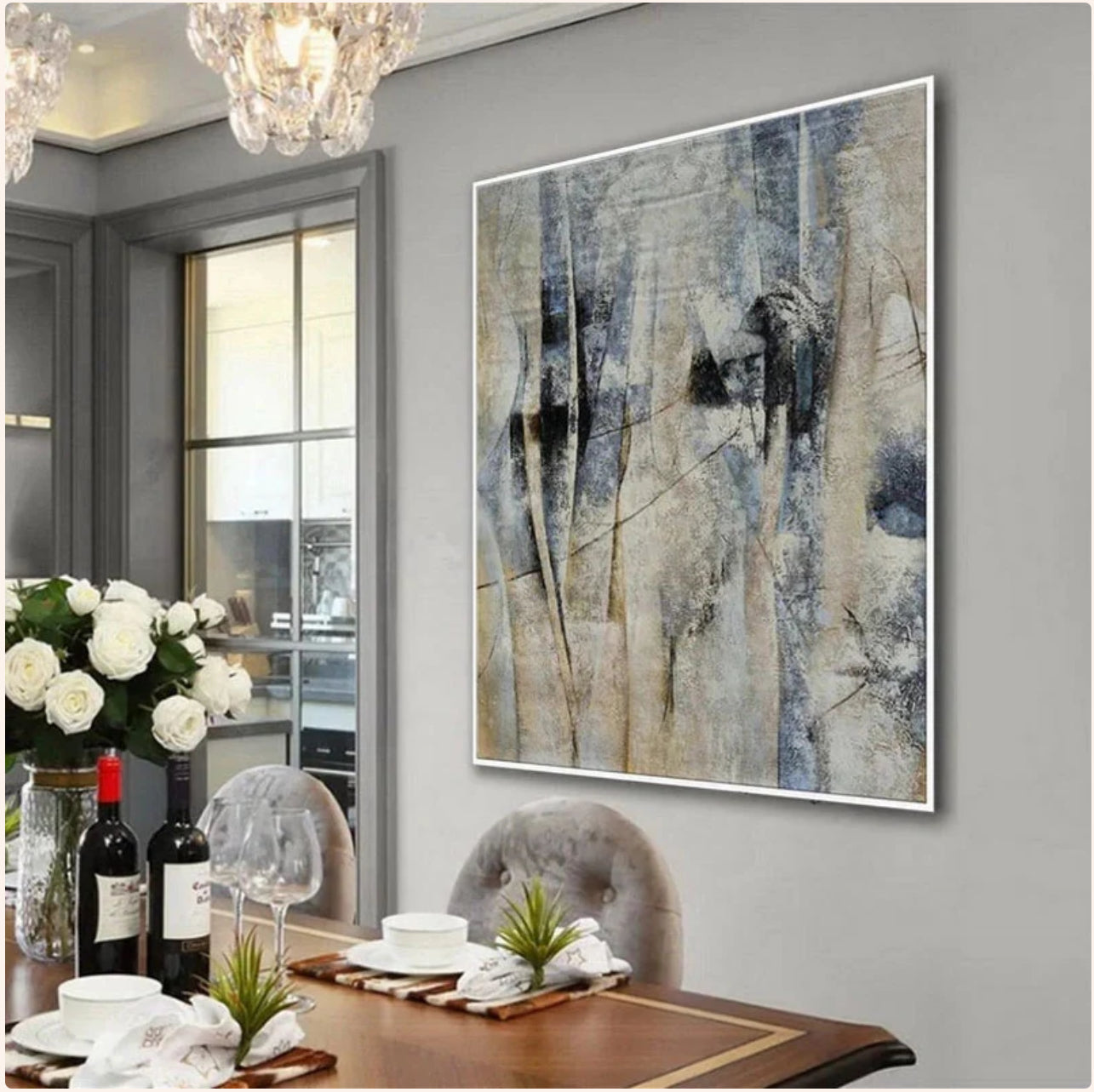 The Wanderers' is a painting that provides its viewers with a sense of calm and tranquility. This is due to the coloration of the piece. The painting's abstract nature allows it to comfortably fit into any environment!