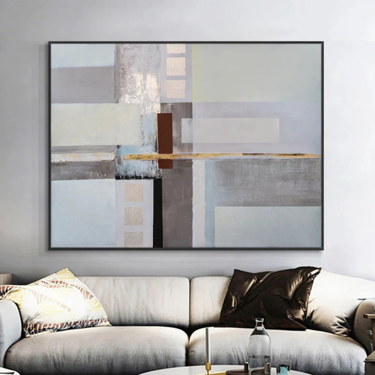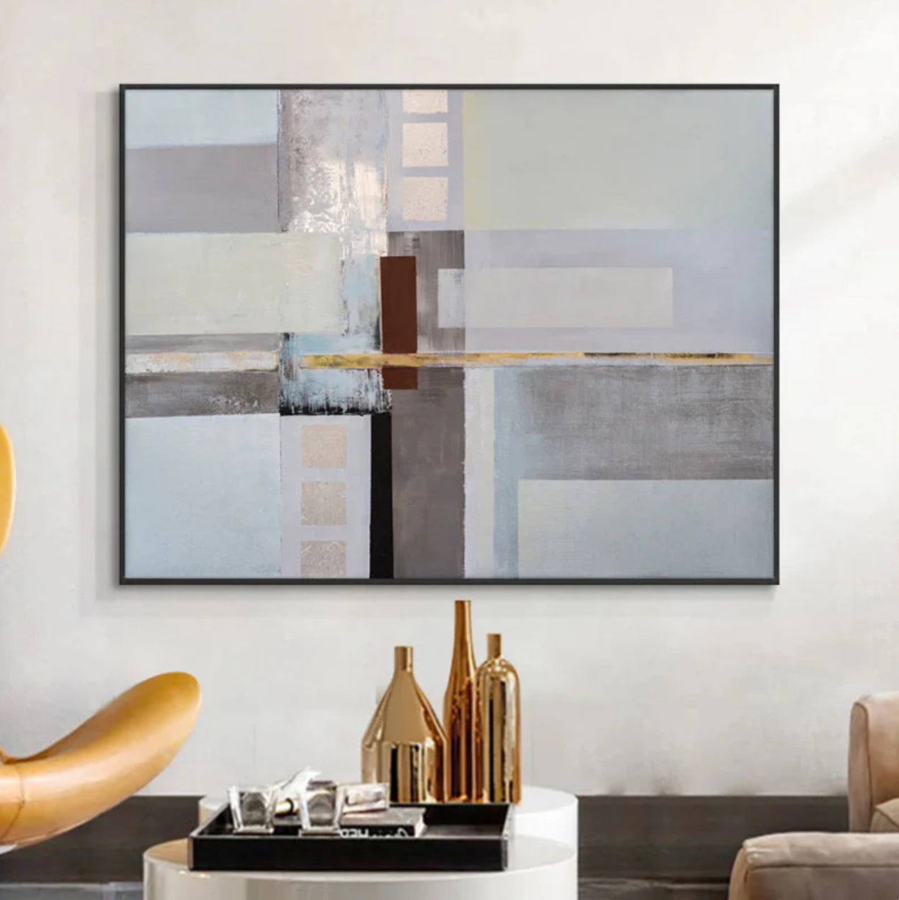 Lose yourself in Trance, a modern abstract that feels like visual poetry. Its gentle blend of textures and metallic touches evokes depth and reflection. A perfect balance of minimalism and mystery.